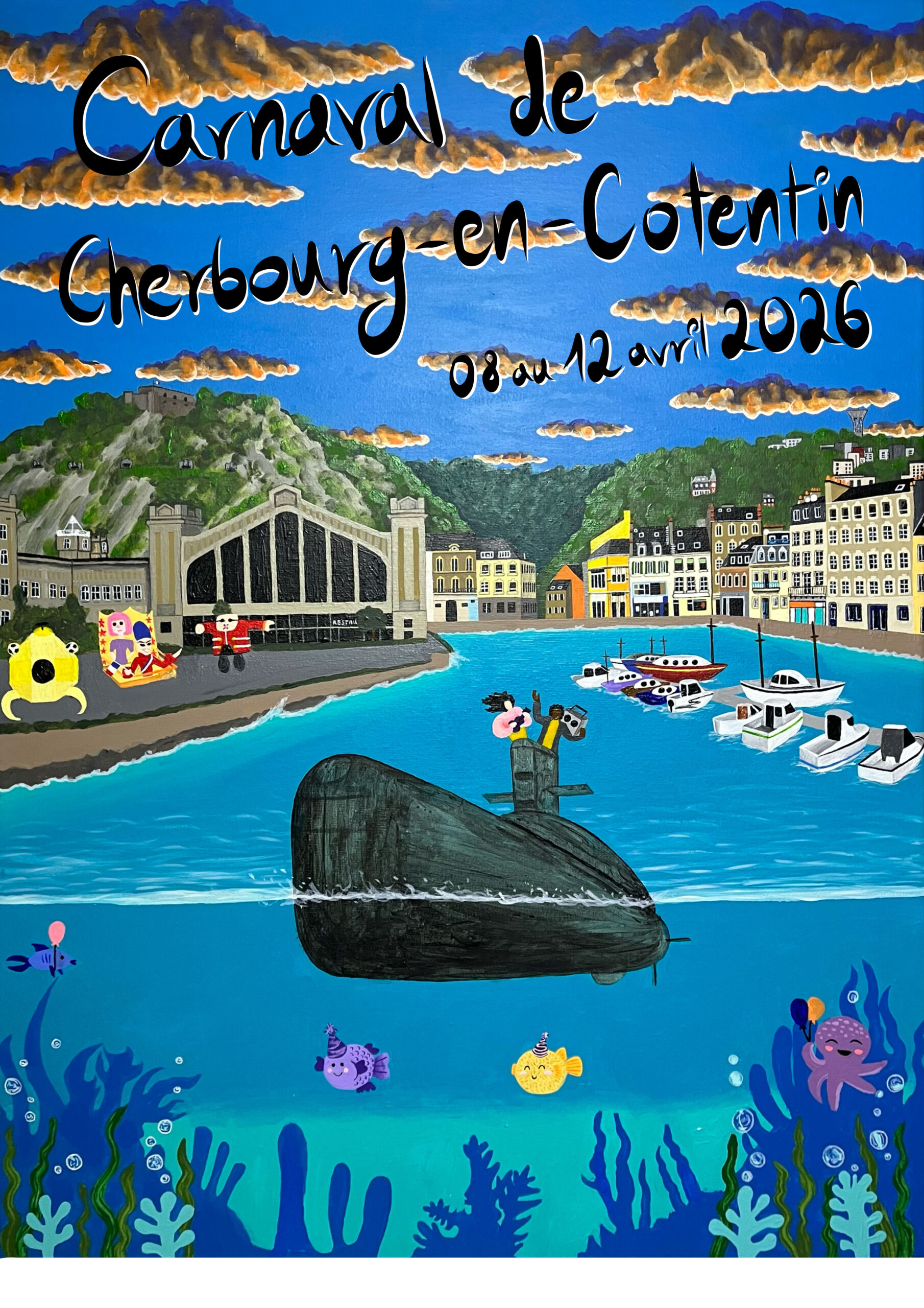Participez à la sélection de l’affiche officielle en votant pour vos créations favorites. Vous pouvez voter une seule fois, mais pour plusieurs affiches. Les votes sont ouverts du 16 au 22 février 2026. Les trois meilleures affiches de chaque catégorie seront ensuite soumises au vote du Jury. La présentation de l’affiche officielle du Carnaval de Cherbourg aura lieu le 10 mars 2026.